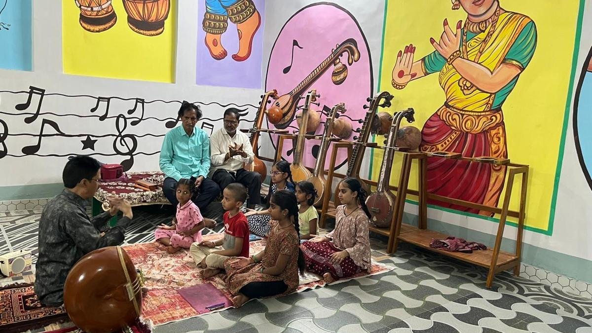 Children attending a music class at the Puvvada Anjamma Memorial Music and Dance School in the Kotta Agraharam of Vizianagaram. | Photo credit: Special arrangement