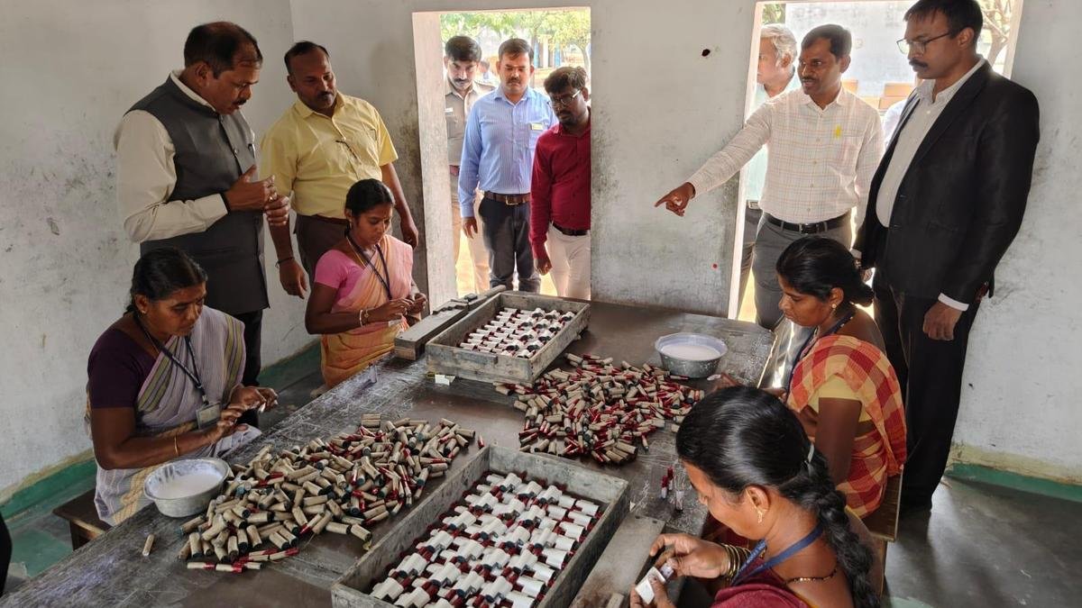 A two-member committee visited a firecracker manufacturing unit at Sivakasi in Tamil Nadu on Monday. | Photo credit: BY ARRANGEMENT