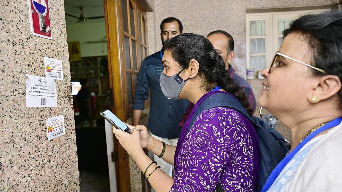 Enumerators interact with a family during a social and educational survey in Bengaluru’s Nagendra block. File | Photo credit: Murali Kumar K.