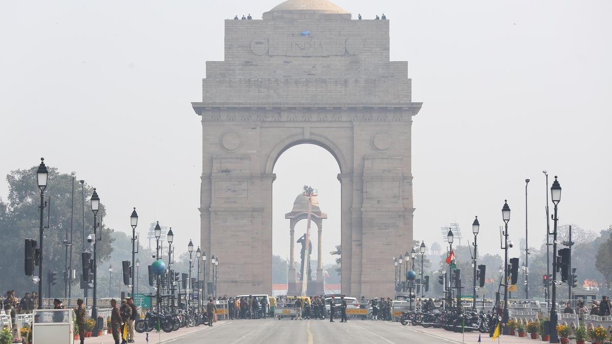 A view of the Kartavya Path amid rehearsals for the 2026 Republic Day Parade, in New Delhi, on January 21, 2026. | Photo credit: ANI