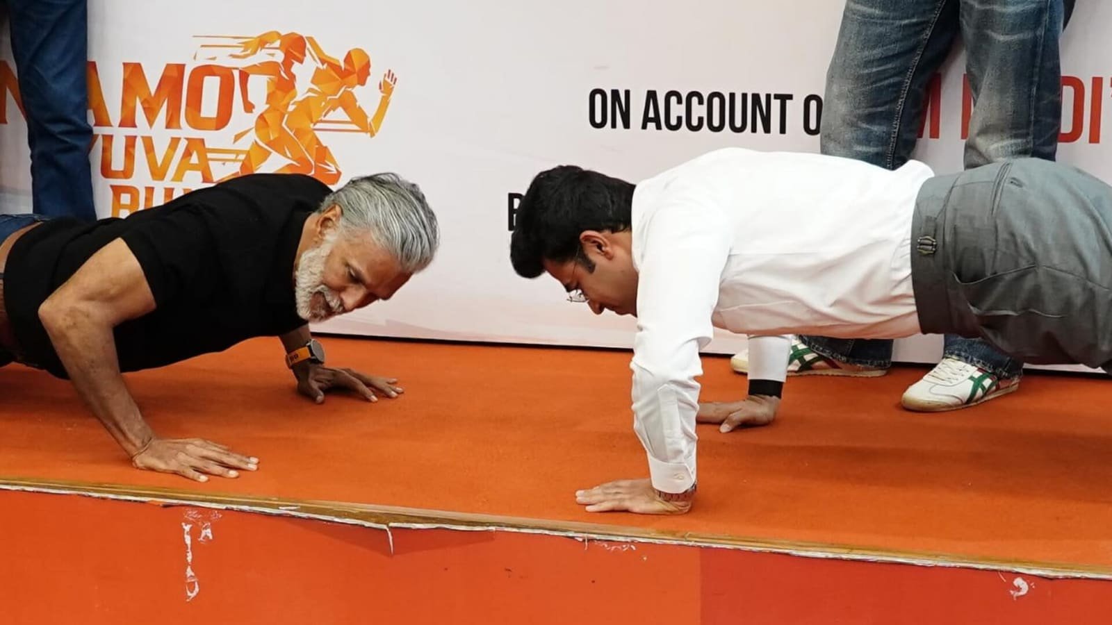 BJP MP Tejasvi Surya takes over Milind Soman in an epic push-up Face-Off-Who wins? | Watch | Tech Word News