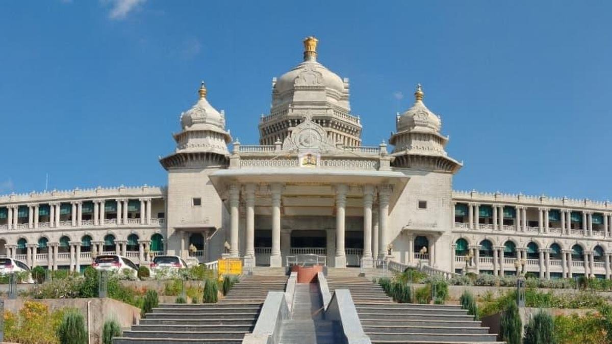 Suvarna Soudha was inaugurated in 2012 at a cost of ₹450 million. Public Works Department officials begin maintenance before each winter session.