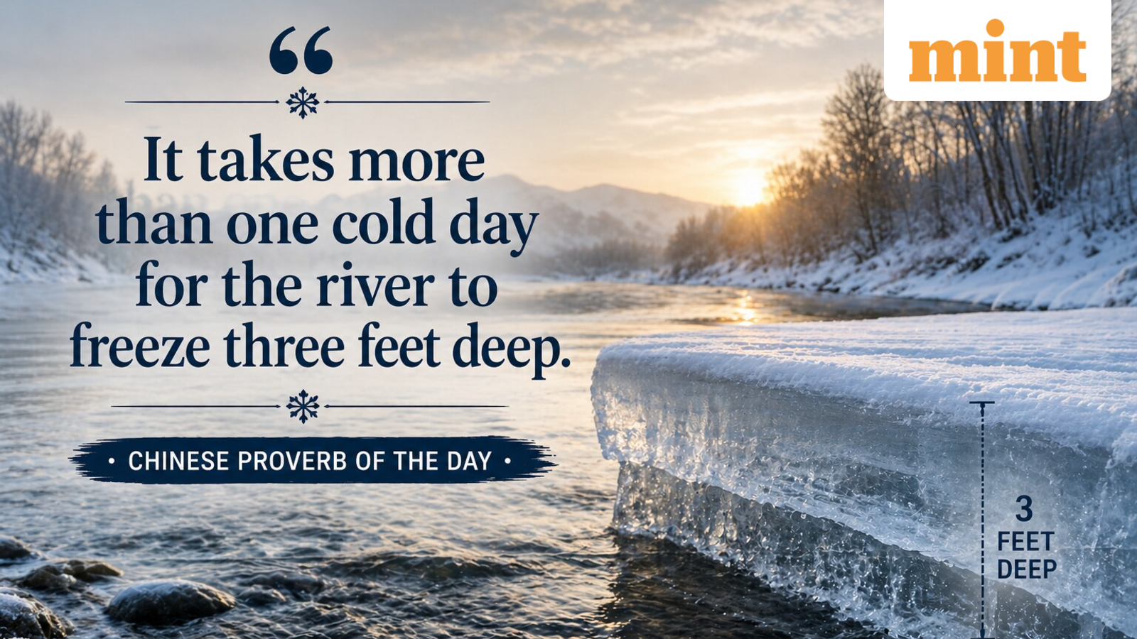 Chinese proverb of the day: “It takes more than one cold day for a river to freeze three feet deep.”