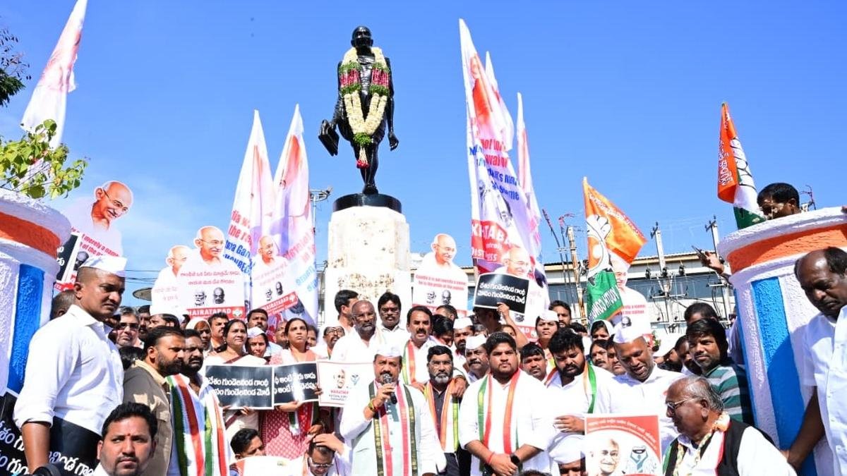 Congress protests removal of Gandhi’s name from MGNREGA