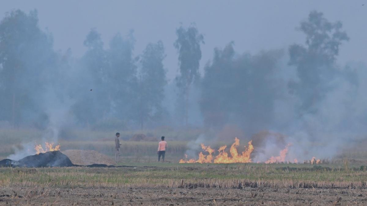 The Environment Ministry has repeatedly claimed that the number of fires in Punjab and Haryana has fallen by 92% and 90% from 2021, respectively, citing a sharp decline in stubble burning and the effectiveness of measures in both states. File | Photo credit: The Hindu