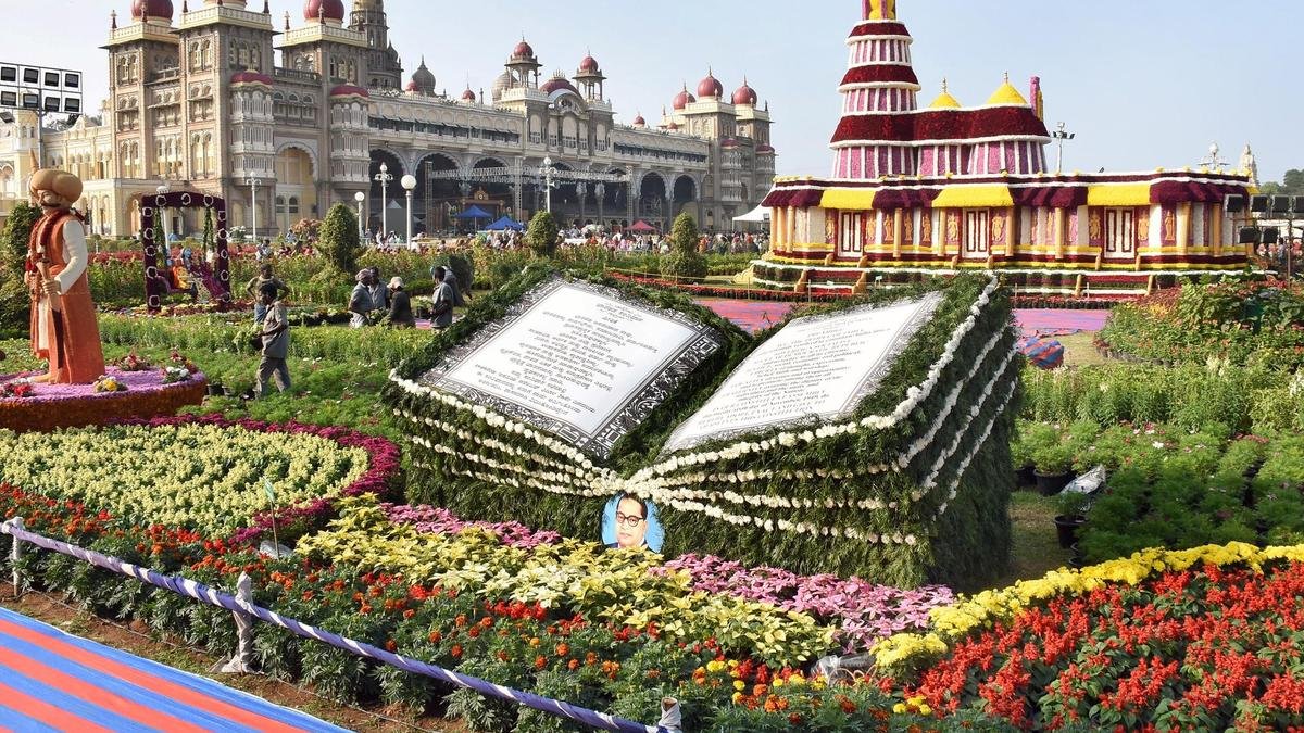 One of the highlights of this year’s exhibition is the Preamble to the Constitution of India, designed in the form of a book and decorated with flowers. The floral replica of the Sringeri Sharada Peetham is also another major attraction of the flower show.