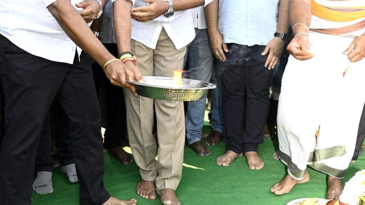 Chandragiri MLA Pulivarthi Nani and TUDA Chairman C. Divakar Reddy on Wednesday performed a ‘Bhumi Puja’ for the widening of the road connecting the SPMVV campus to the National Highway at Upparapalli in Tirupati. | Photo credit: KV Pooranachandra Kumar