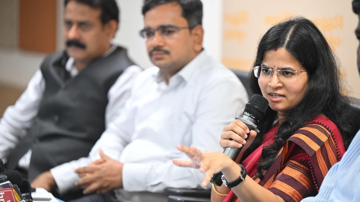 Civil Supply Director Nupur Ajay Kumar was addressing the media in Vijayawada on Monday. | Photo credit: KVS Giri