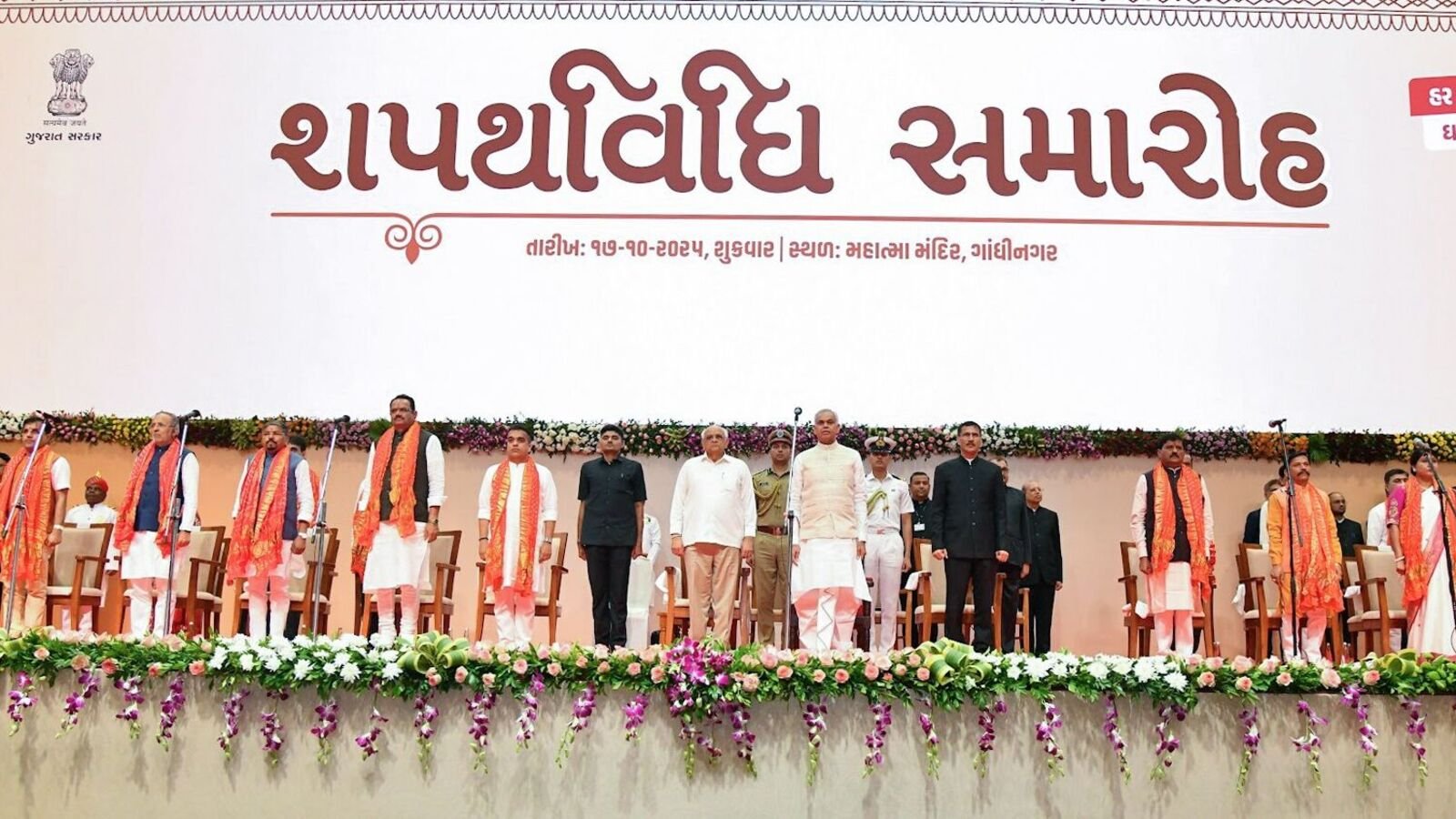 A government statement said the oath-taking ceremony was also attended by Gujarat BJP president Jagdish Vishwakarma, union ministers Mansukh Mandaviya and CR Patil, MPs, MLAs, organization officials, senior leaders, saints and leaders from various sections of society.