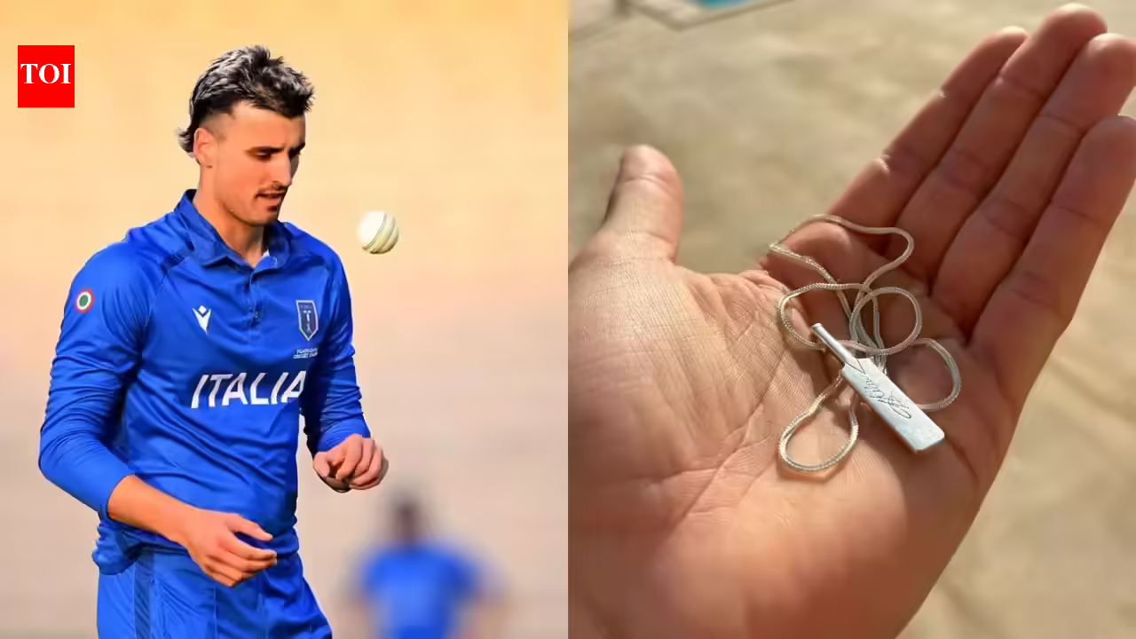 “It’s my dream to play alongside him (Hardik Pandya). I’m not really looking forward to playing against him or bowling with him, but if we qualify and I get a chance to play against him or face him, it would be an incredible experience. He’s someone I’ve always looked up to and modeled my game after. I’m also an all-rounder and I really admire myself for the way he approaches the media. That’s something I’m trying to do now imitate,” Draca told TimesofIndia.com in an exclusive interview. “His energy is hard to match – he’s always at the top of his game. If I can mirror that going forward, I think I’ll be on the right track for a good career. I’d love to talk to him, get some tips. He seems like such a nice guy and he was one of my heroes growing up. I like how he plays fearlessly, tries to battle with the bat and the ball, and if I can do that.” I will know that I am going in the right direction,” he added.Italy, a nation long celebrated for its dominance in football, is set to take to the T20 World Cup stage for the first time. The Azzurri find themselves in a tough group alongside Scotland, West Indies, Nepal and England.Despite the stiff competition, 25-year-old Draca remains confident of Italy’s chances of reaching the Super Eights and is eager to make his mark on the global stage; to meet his idol Pandya and ask him the questions he had already jotted down in his travel journal. “One thing I would ask him is what his watch is worth – he’s wearing a Royal Oak! (laughs) Just kidding. I’d also ask about his variations, especially at the back end of the innings. I really like his cut and knee, so I’d probably ask him about those,” he said.“Then I’d just chat and try to pick his brain. Whether it’s five seconds or five minutes, I don’t care – we’ll see how long the conversation lasts,” Draco added with a smile.‘SPECIAL’ PENDANT25-year-old Draco honed his skills under the tutelage of legends Dennis Lillee and Carlos Brathwaite.Lillee mentored him in the art of fast bowling, while Brathwaite, famous for hitting four consecutive sixes against Ben Stokes in the 2016 T20 World Cup final to secure the title for West Indies, shaped his all-round game. “I was lucky enough to meet Carlos Brathwaite during the franchise. He really took me under his wing over the last year and a half. I flew to Barbados a few times to train with his coach S&C Jamar. He invested a lot of time in my cricket. Carlos always helped me stay calm and be myself when I was worried on the field. I didn’t care about the pressure on the field. stay relaxed, focus to my plans and perform,” said Draco.“I also have Dennis Lillee as a mentor. He guided me when I was 17, helped me through rehab and taught me discipline on and off the field. He even gave me his World Series chain to wear during the World Cup, which is an incredible inspiration. I know I’ll be emotional when I put it on for the first time,” he added.“Having that chain around my neck reminds me of the faith these greats have in me. It gives me the confidence to keep things simple, play fast, enjoy the game and perform for my country,” Draca said.
