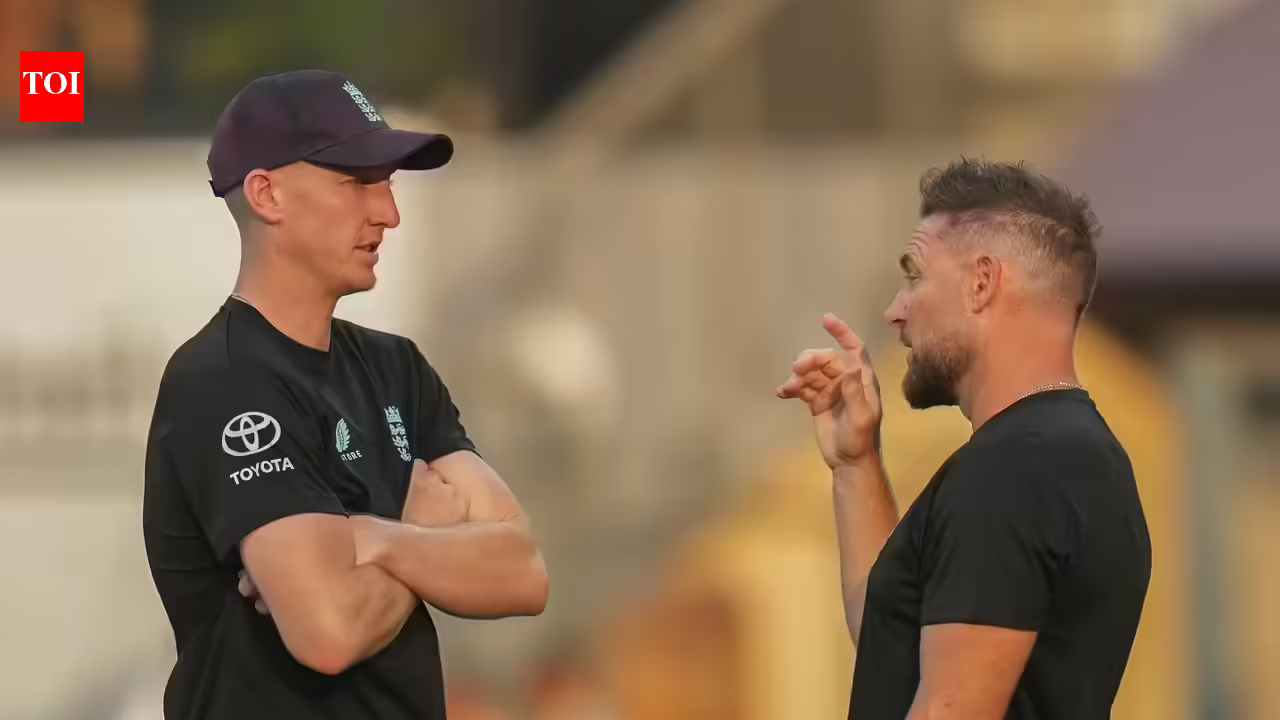 England coach Brendon McCullum, right, chats with England captain Harry Brooke (AP Photo/Rafiq Maqbool) MUMBAI: England white-ball captain Harry Brook called Brendon McCullum “the best coach I ever had”, urging the England and Wales Cricket Board (ECB) to retain the New Zealander as head coach of the all-format team after England’s seven-run semi-final loss to India. McCullum’s future came under scrutiny after England’s poor Ashes tour in Australia, where they lost 1-4.After England’s narrow defeat to India, McCullum said he would “love to continue”, with Brook insisting the former New Zealand captain remained “125%” the right man for the job. Brook said his partnership with McCullum has flourished since he took over as white-ball captain in April last year. “Our partnership has been really good since I took over. We get on very well and the communication has been excellent. Long may it continue,” said Brook.