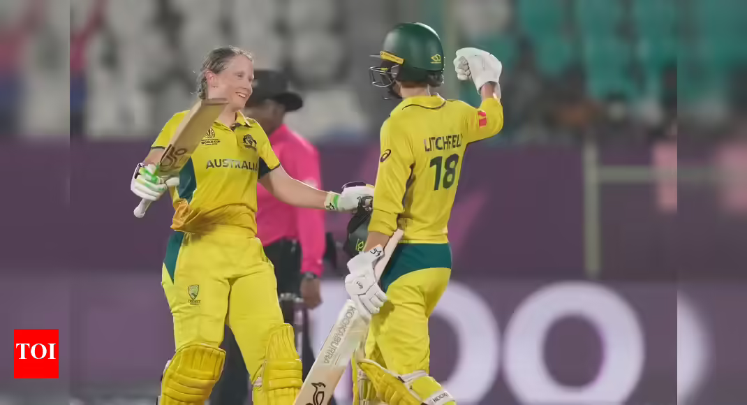 Australia captain Alyssa Healy celebrates with Phoebe Litchfield after scoring a century against Bangladesh in Visakhapatnam on Thursday (AP Photo/Mahesh Kumar A.) Alyssa Healy’s sublime form continued as the Australian skipper hammered her second consecutive century to lead her side to a dominant 10-wicket victory over Bangladesh in the Women’s ODI World Cup on Thursday. After opting to bat, Bangladesh were restricted to 198 for 9 with Australia’s disciplined bowling keeping them in check. In reply, Healy (113* off 77 balls) and Phoebe Litchfield (84* off 72 balls) made light work of the target, completing the chase in just 24.5 overs.