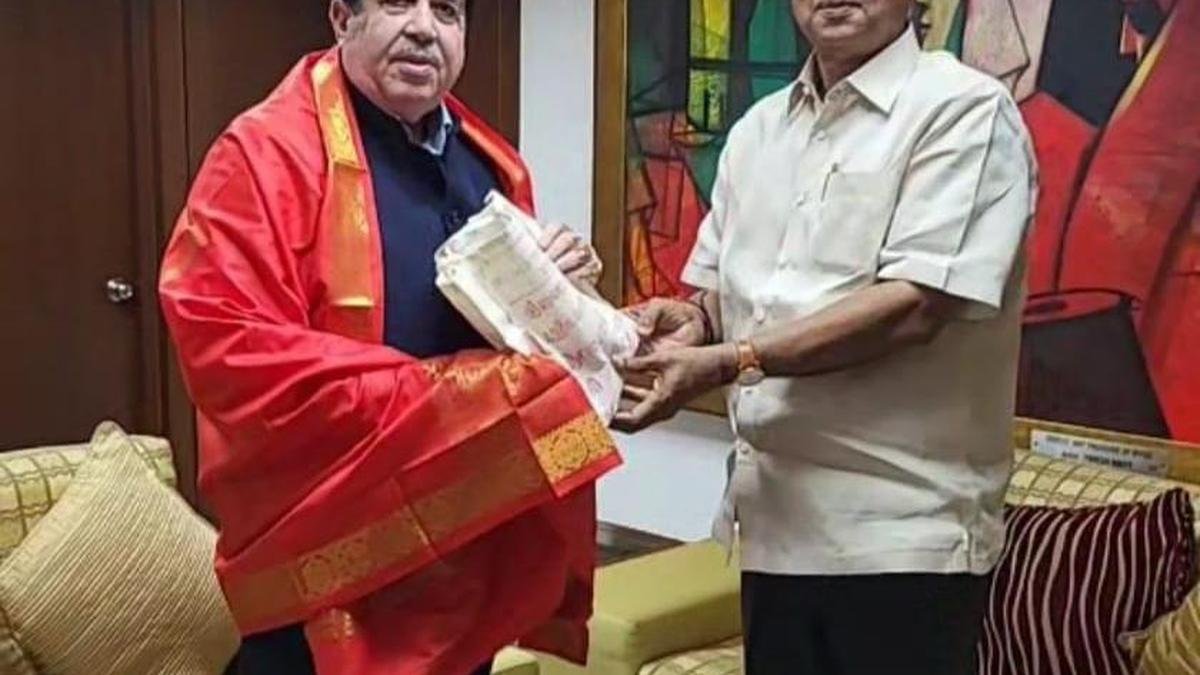 Nellore MP Vemireddy Prabhakar Reddy with IFFCO Chairman Dileep Sanghani in New Delhi earlier this year for development of IFFCO SEZ in SPSR Nellore district. | Photo credit: BY ARRANGEMENT