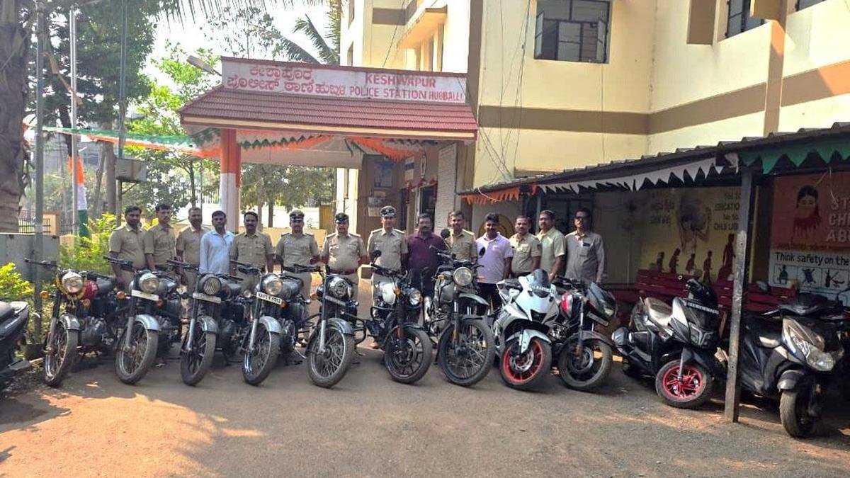 Keshwar police in Hubballi arrested an inter-district bike thief and recovered 12 two-wheelers worth around ₹20,000.