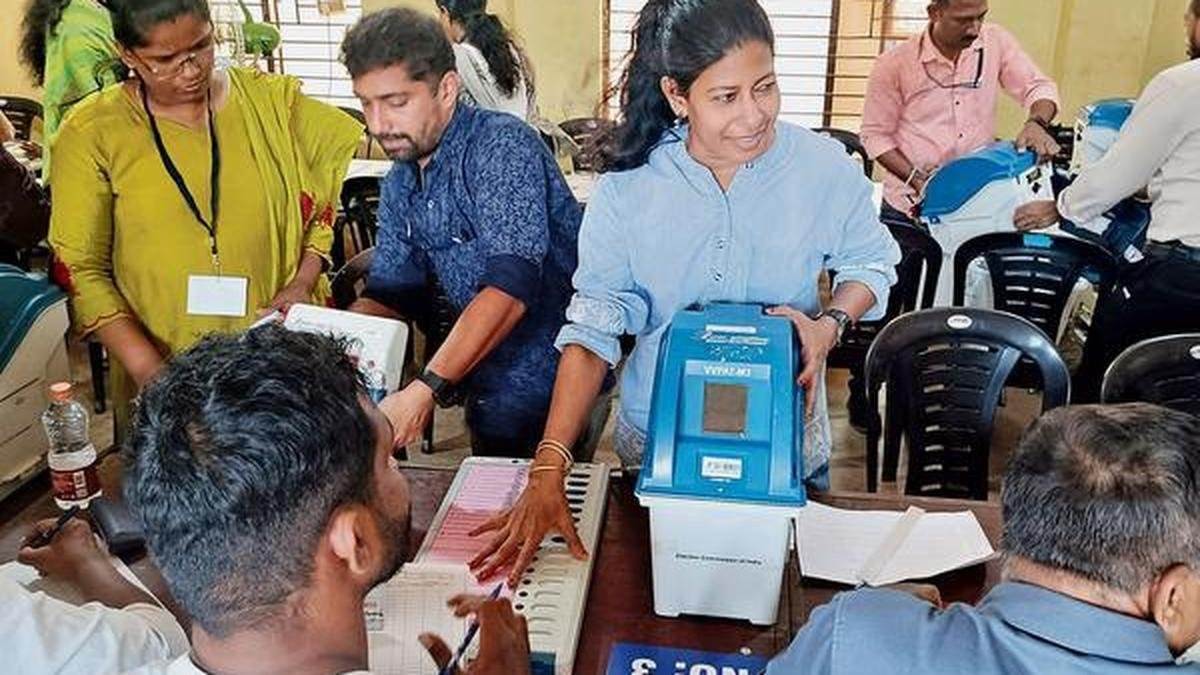 Mock voting is underway at GVHSS in Kannur ahead of assembly elections. File | Photo credit: Mohan SK