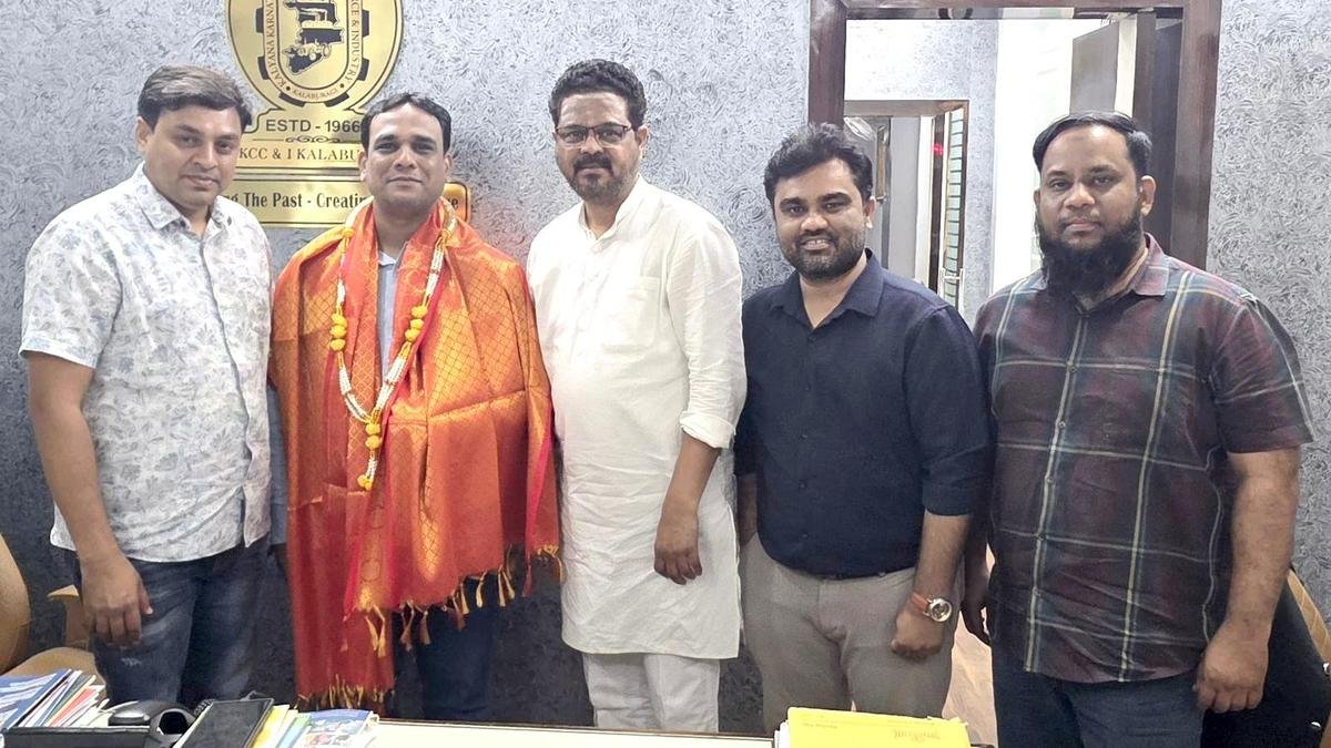 KKCCI office felicitated Star Air Regional Business Manager Mohammed Sohail Ahmed during his visit to Kalaburagi to discuss the resumption of flight services. | Photo credit: ARUN KULKARNI