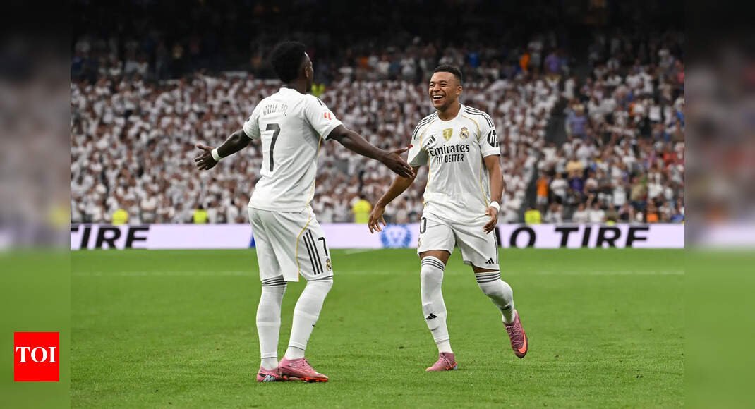 Kylian Mbappe of Real Madrid (R) celebrates scoring the second goal of his team with teammate Vinicius Junior during the LALIGA EA sports match between Real Madrid CF and RCD Espanyol de Barcelona (photo by Denis Doyle/Getty Images) Real Madrid secured a convincing victory of 2-0 against Espanyol in the La League on Saturday, while Kylian Mbappé and Éder Mititão scored spectacular long-term goals. The victory was maintained by Madrid’s perfect beginning of the five -round season in five rounds and shifted them five points from Espanyol and Barcelona.Mititão opened scoring in the 22nd minute with a strong shot from the right leg from the outside, which found the upper corner, with goalkeeper Marko Dmitrovic barely touched despite diving efforts.Mbappé doubled Madrid’s lead in the 47th minute by another impressive strike from the distance, which planted in the lower corner and described its seventh goal in six games this season.“If you face the defensive set well inside its area, you have to try long range,” said coach Xabi Alonso. “Mititão’s goal was very good and Kylian scored in the crossing. We are taking steps forward and growing.”The match saw the return of England midfielder Jude Bellingham as a late substitute, with his first performance from the Surgery of the shoulders on July 16.Espanyol, who entered the match undefeated and third after their best start in 30 years, fought without the suspended best shooter Pure Mill.Dmitrovic prevented further damage with consecutive savings against Mbappé in the 65th minute, while the culprit of Junior hit a place for Madrid.Defender Madrid Dani Carvajal asked after the match his recent incident in the Champions League. “It won’t happen anymore,” Carvajal said, apologizing to the goalkeeper Marseille Gerónimo Ruli.The next La Liga Girona event continued when they suffered 4-0 home defeat to promote Levante and left them at the bottom of the ranking with five consecutive losses.“We are the worst team in the league,” said coach Mirchel Sánchez, “and the only way to continue to work and improve.”Georges Mikautadze scored his first goal for Villarreal in winning 2-1 over the 10-man Osasuna, while Alexis Sánchez counted his first goal for Seville in their 2-1 victory against Alaves.Valencia was reflected in their previous loss of 6-0 to Barcelona by defeating the 10-men’s athletic Bilbao 2-0. Baptiste Santamaría and Hugo Duro scored after Athletic’s Daniel Vivian received a red card.Athletic Bilbao has now undergone three matches without scoring, including the defeat of the Champions League to Arsenal, as Nico Williams still lacks injured Spain.Madrid played without the back of Trent Alexander-Arnold, who is displaced by Hamstring’s injuries from Marseille and suspended Dean Huijsen defender.Barcelona will host the fifth place of Getafe on their 6,000 places Estadi Johan Cruyff on Sunday.