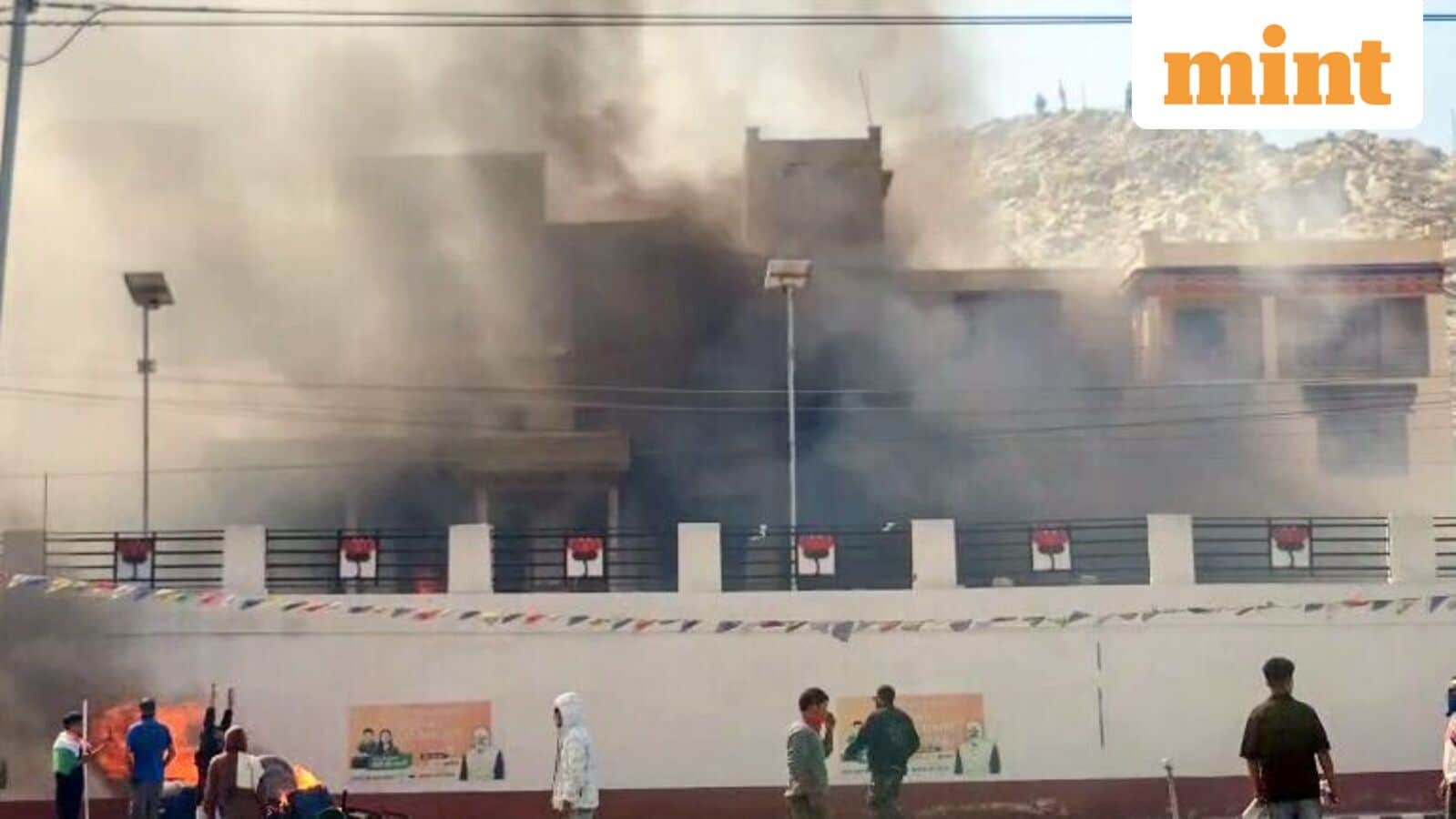 The police fired to control the situation after protests for the statehood of Ladakh and the expansion of the sixth schedule to become violent, while the BJP office was ignited by several vehicles.