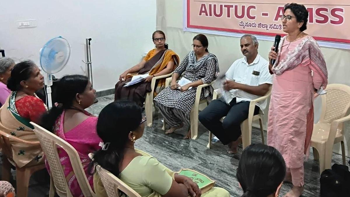 The Karnataka State Domestic Workers Association, represented by the All India United Trade Union Center Mysuru District Committee (AIUTUC) and the All India Mahila Sanskritik Sangathan (AIMSS), which convened the meeting, presented a petition to the Mysuru Labor Inspector seeking to meet their demands, including the immediate establishment of a Domestic Workers Welfare Board.