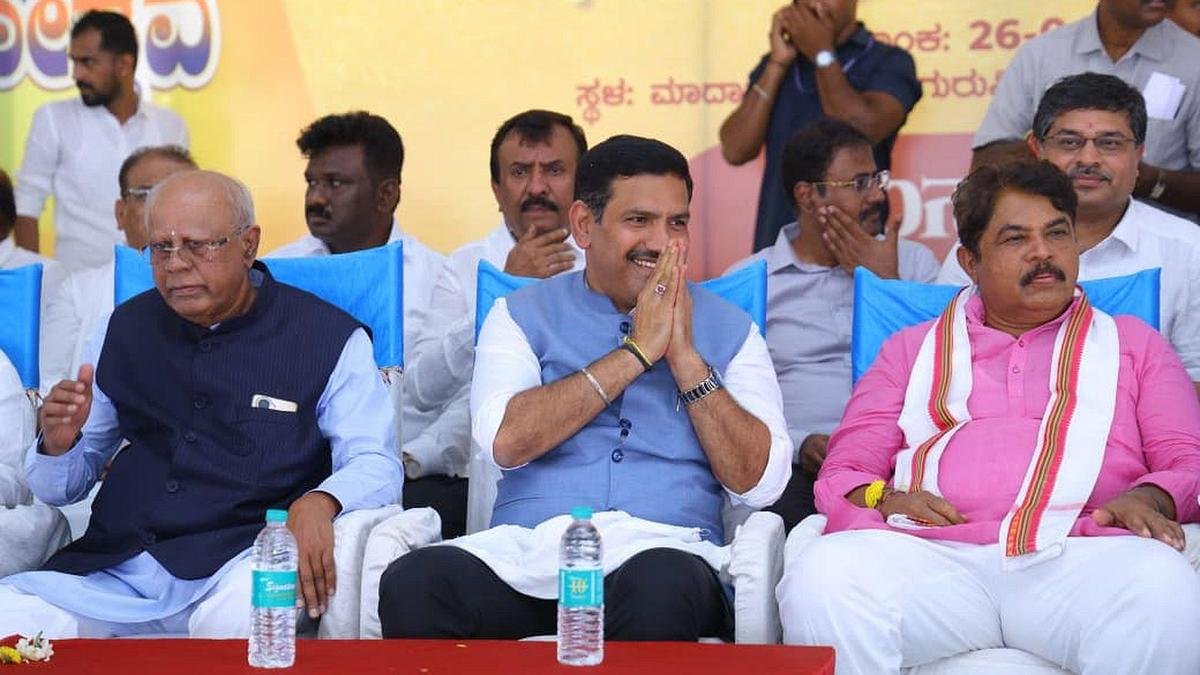 BJP leaders BY Vijayendra and R. Ashok at an event in Chitradurga on Sunday. | Photo credit: special arrangement