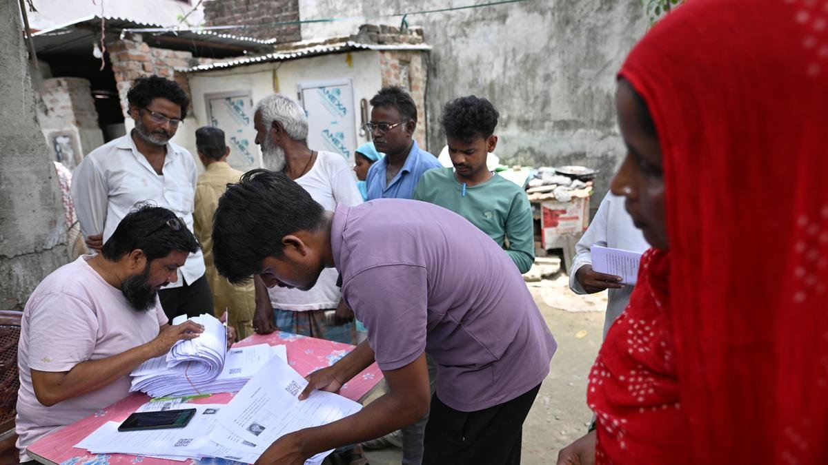 The official at the level of the stand checks the documents during the revision of a special investigation on the election list in the district of Araria in Bihar. File | Photo Credit: Hind