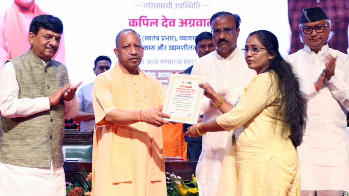 Main Minister UTTAR Pradesh Yogi Adityanath divides the appointment letter to newly selected instructors for various professions for the selection of UTTAR Pradesh services in Lok Bhavan in Lucknow, 7 September 2025. Photo: x/@cmofficeup via nor.