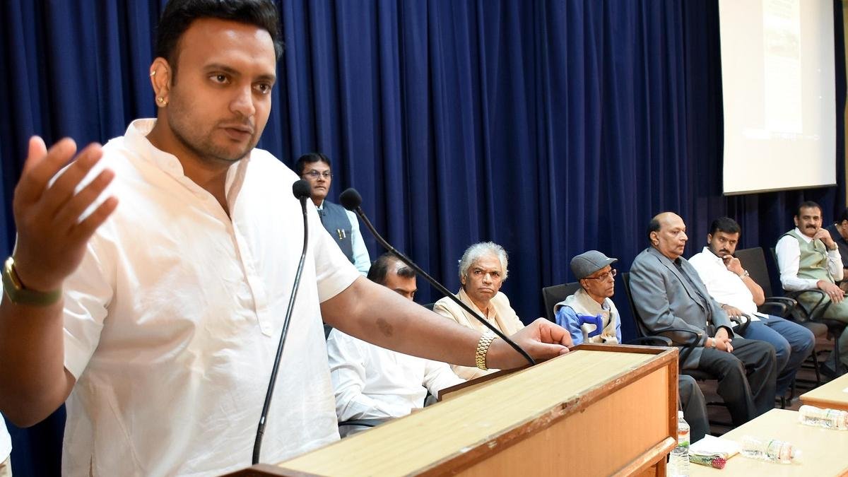 Yaduveer Krishnadatta Chamaraja Wadiyar, MP for Mysuru, at an interaction program on Greater Mysuru on Sunday. | Photo credit: MA SRIRAM
