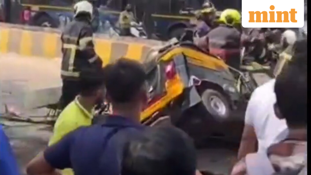 “The cement slab of the pillar collapsed and fell on the autorickshaw below, completely smashing the tricycle. Three to four people are feared to be injured,” an official told PTI.