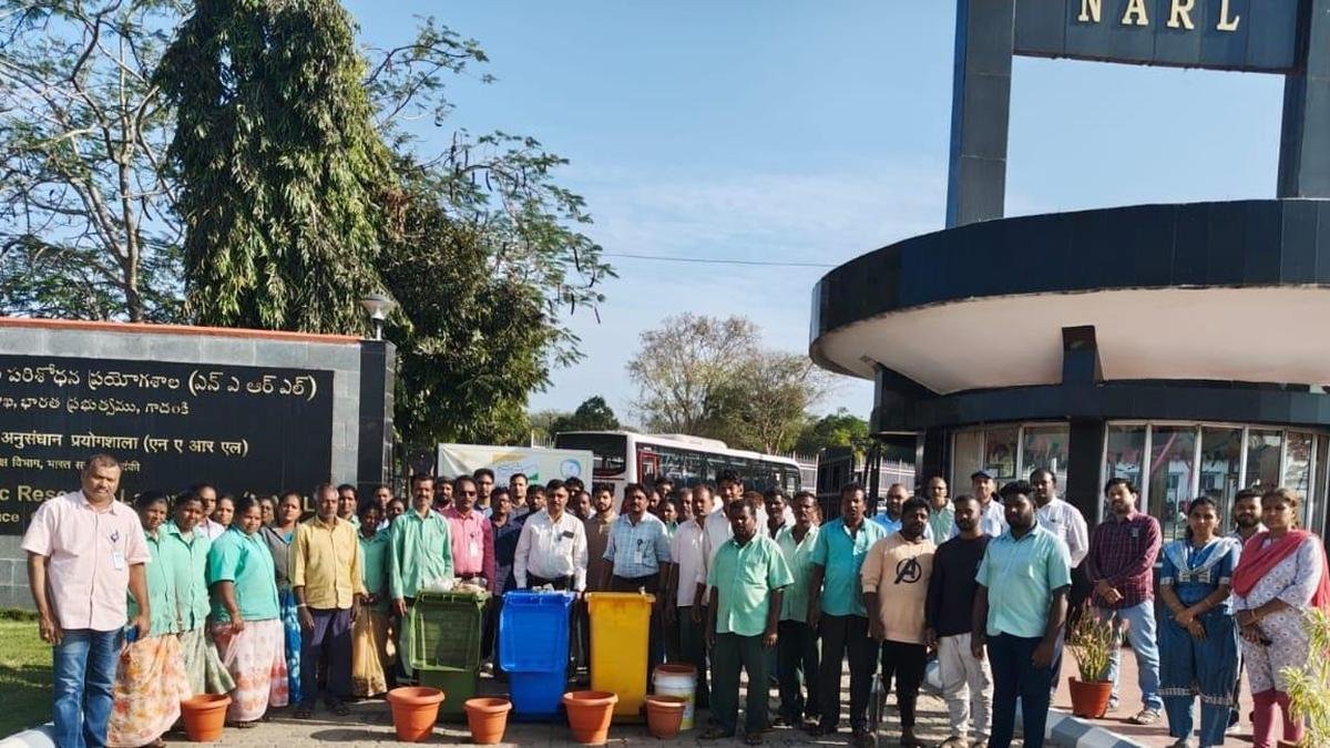 Employees of the National Atmospheric Research Laboratory take a pledge during ‘Swachhata Pakhwada 2026’ at the Gadanki campus near Tirupati on Friday. | Photo credit: BY ARRANGEMENT