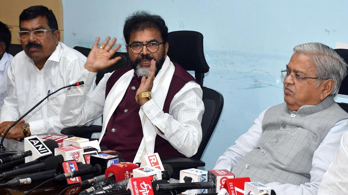 Leader of the Opposition in the Legislative Council Chalavadi Narayanaswamy and former minister Govind Karjol addressed pressmen in Hubballi on Saturday. | Photo credit: KIRAN BAKALE