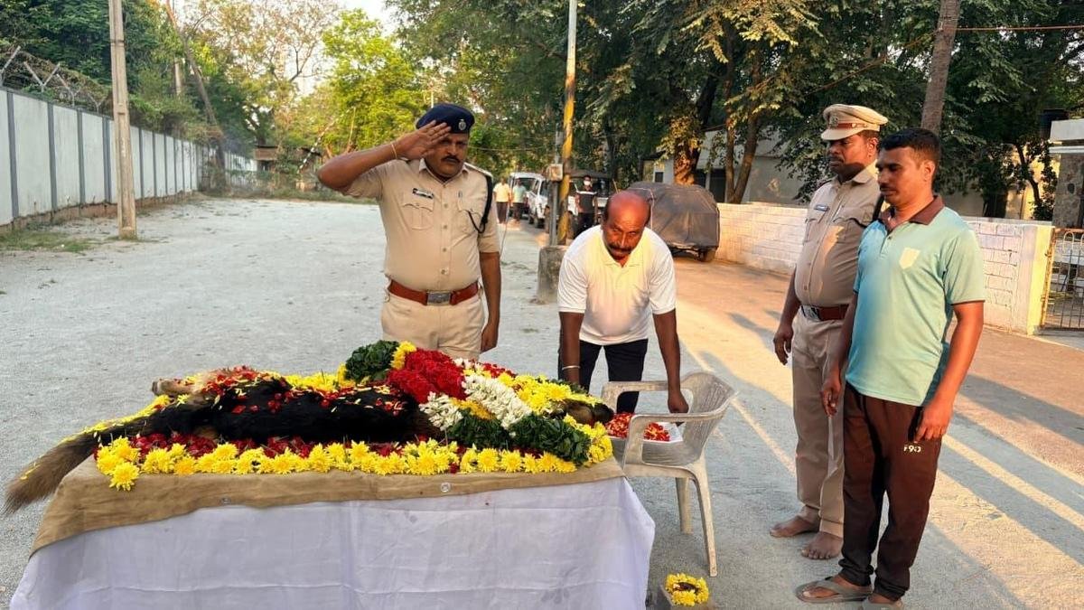 On the instructions of Superintendent of Police L. Subbarayudu, the final rites of Hunter were performed in a special manner during which a staff led by Additional Superintendent of Police (Armed Reserve) D. Srinivasa Rao paid their last obeisance.