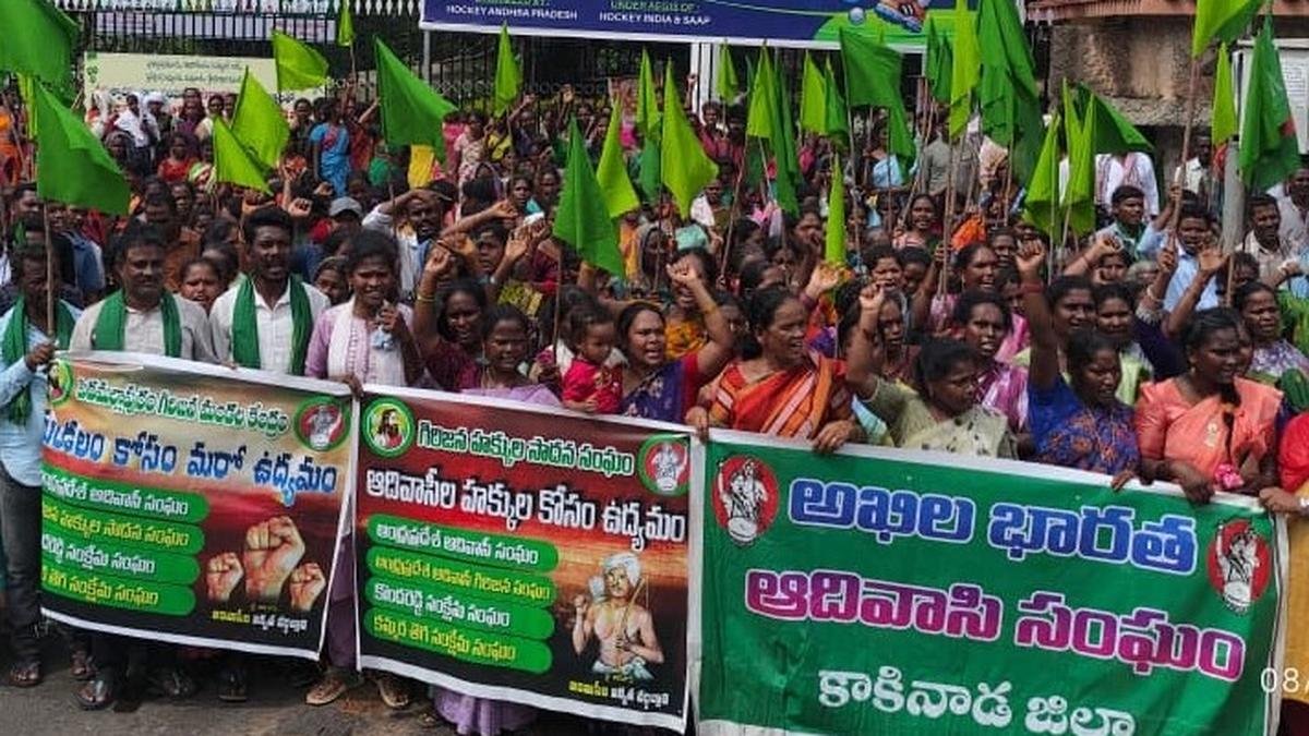 Members of four tribal communities – Konda Kammar, Manne Dora, Konda Dora and Konda Redda (classified as a particularly vulnerable tribal group), belonging to 10 gram of Panchayat, which on Monday was a protest before Kakinada collecting condition.