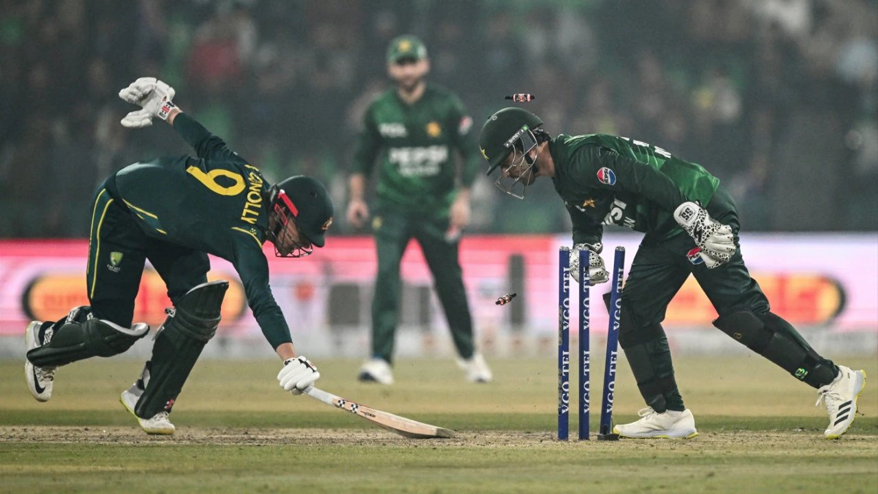 In the 14th over of Australia’s chase, Mohammad Nawaz dismissed Cooper Connolly after the batter danced down the track. Nawaz smartly cuts his length and makes the ball spin back. Connolly failed to make contact as the delivery drifted down the leg side, allowing Nafay to collect the ball cleanly and clear the bails with plenty of time. Connolly tried to get back into his crease but was short enough.