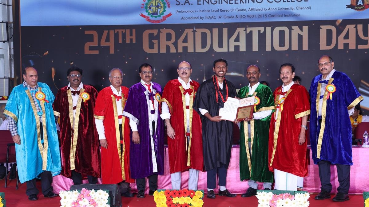 A total of 759 students graduated on Wednesday (18 March 2026) in the 24th graduation of the SA Engineering College. Thirty rank holders received cash prizes worth ₹2.52 lakh along with shields and citations.