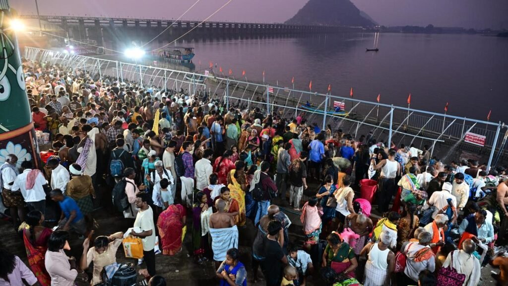 The celebrations began with devotees taking a sacred dip in the river Krishna. The bathing ghats, especially the Durga Ghat, were full of devotees who arrived before dawn to perform the sacred rituals. Jamgama Devaras offered blessings to the devotees at the ghats. Temples were adorned with decorative ‘thoranams’ and ‘mandapams’, while flexible slabs depicting Lord Shiva and Goddess Parvati were installed at several places. The temple authorities have made elaborate arrangements to ensure smooth conduct of the darshan and the crowd.