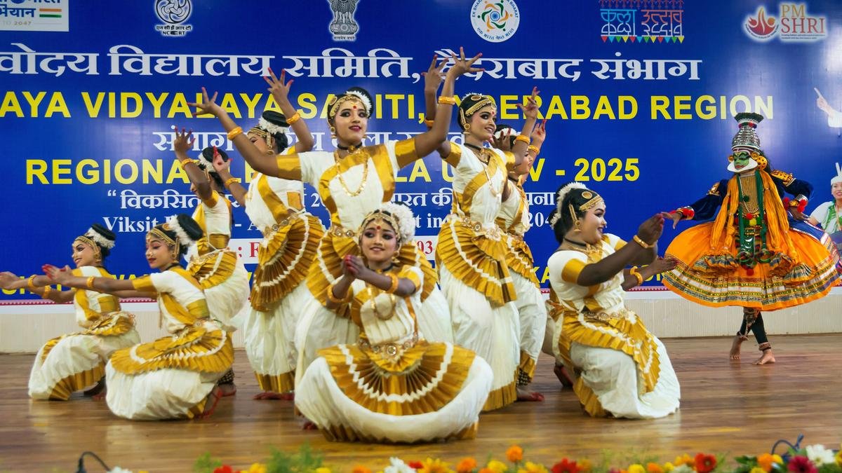 Students from five South Indian states showed their talent in instrumental music, vocal music, traditional competition for narration and sculpture at the regional level of Kala Utsav 2025 on Wednesday. The event was organized jointly by the Ministry of Education, the Indian Government and Navodaya Vidyalaya Samiti as part of the “Viksit Bharat” programs.