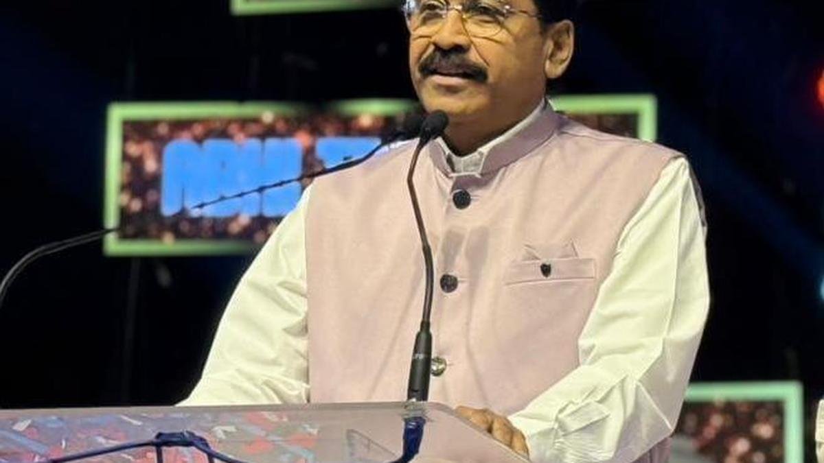 JNTUA Vice-Chancellor H. Sudarsana Rao addressing the students at the valedictory session of ‘Selesta 2K26’ techno-cultural festival at SVCET in Chittoor on Saturday. | Photo credit: ARANGMENT