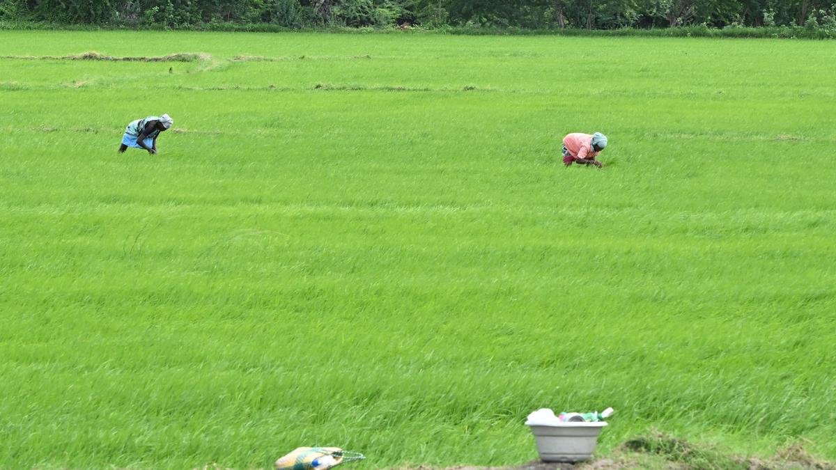 Farmers in the paddy fields of Thiruvadanai. File | Photo credit: L. Balachandar