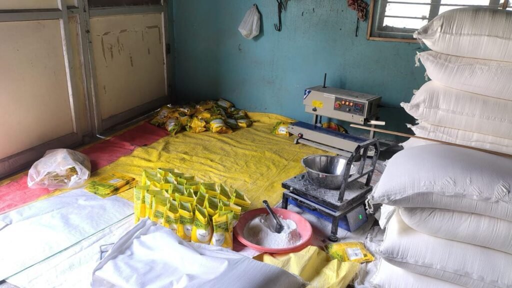 Officials seize low-quality cereal products in warehouse raid. | Photo credit: @cfs_telangana on X