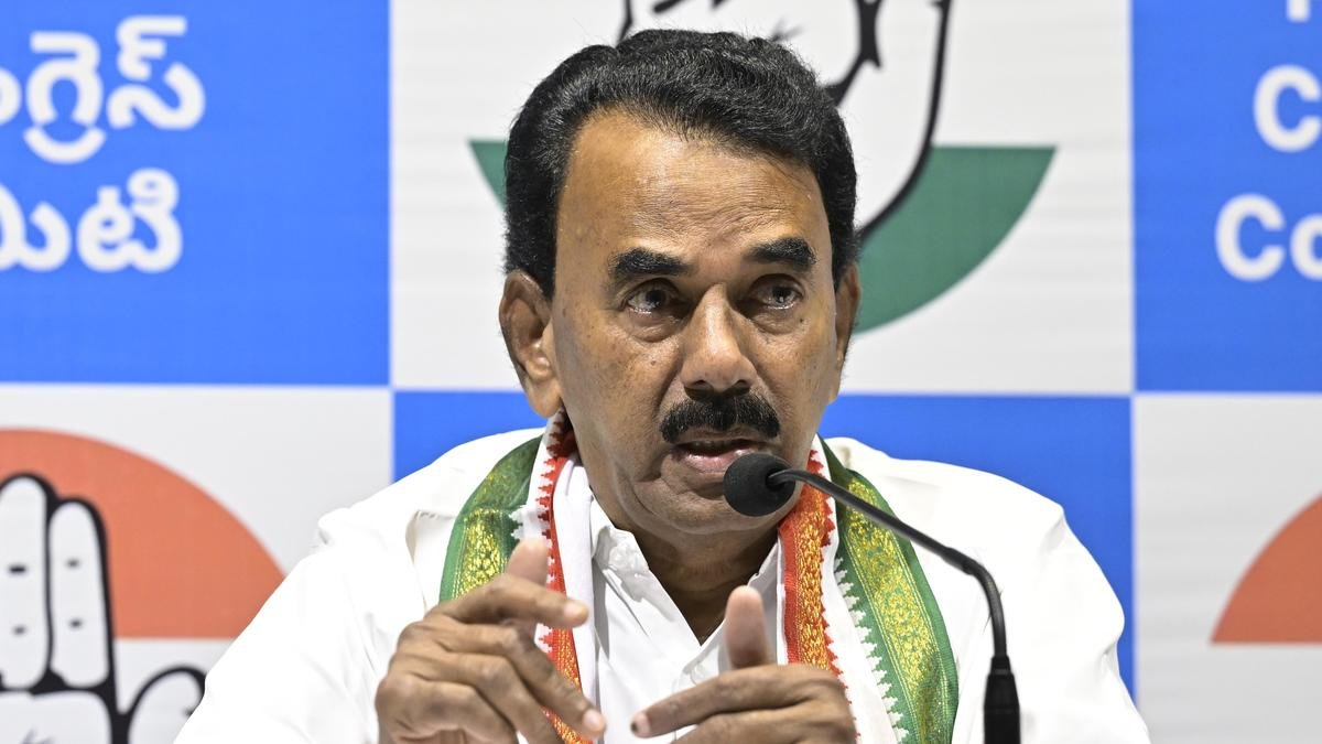 Excise and Excise Minister Jupally Krishna Rao addressed a press conference at Gandhi Bhavan in Hyderabad on Tuesday. | Photo credit: SIDDHANT THAKUR