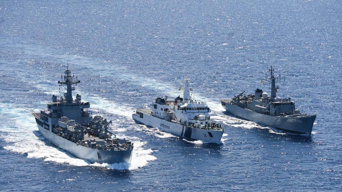 Ships The first training squadron (1TS) of the Indian Navy, INS TIR, INS SHARDUL and CGS Sarathi will arrive in Port Victoria, Seychel, Tuesday (September 2, 2025). | Photo Credit: Neither