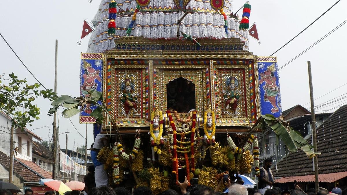 On Sunday morning, the chariots of Sree Lakshmi Narayana Perumal Temple and Sree Prasanna Maha Ganapathy Temple will set off after mounting their respective deities. After completing their designated routes, all the chariots of the four temples assemble at Therumutty.