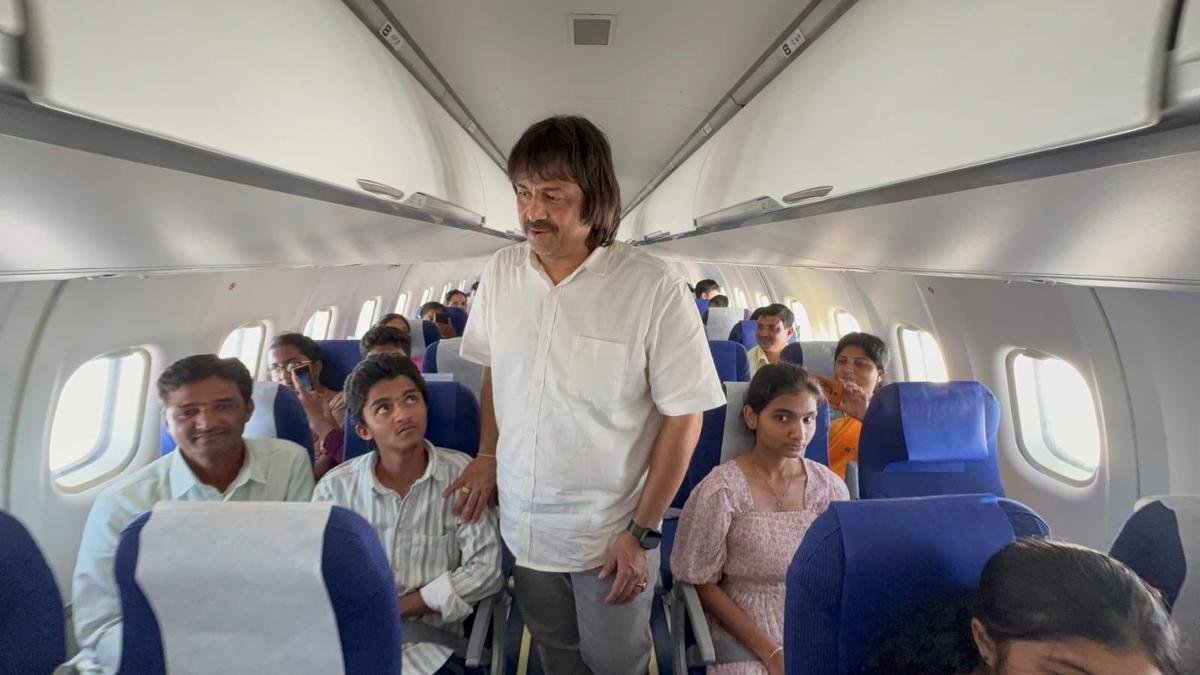 School Education Minister Madhu Bangarappa, who is also the minister in-charge of Shivamogga district, arranged an air trip for 54 students who had scored well in II PU and SSLC last year. Each student was accompanied by a parent. A total of 108 people traveled to Bengaluru with the minister. The minister’s office arranged for the students to visit various places, including the Visvesvaraya Museum of Industry and Technology in the capital.