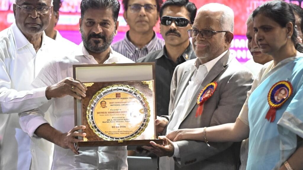 The Chief Minister was speaking after presenting veteran communist leader Raavi Narayan Reddy with the National Award for Justice (Retired) B. Sudharshan Reddy here on Monday (February 2). He recalled how Telangana ideologue and professor M. Kodandaram was arrested after his house was stormed by a police gatekeeper during the BRS regime. “Wasn’t Mr. Kodandaram instrumental in rallying the agitators for a separate state? Why didn’t the then government remember his contribution to the statehood movement?” he asked.