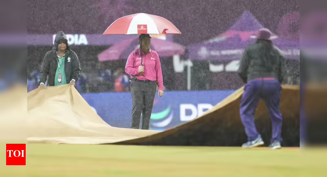 Ground staff cover the pitch as rain stops play during the ICC Women’s World Cup 2025 (PTI Photo/Shashank Parade) The ICC Women’s ODI World Cup 2025 has entered its nerve-racking phase – the knockout stages. As the teams prepare for the high-stakes semifinals, another big challenge looms: the weather. Both Guwahati and Navi Mumbai, the venue for the semi-final, are under threat from rain clouds. With heavy showers in the forecast, fans and teams alike are wondering what will happen if rain spoils the show. Fortunately, the ICC has made arrangements to deal with such a scenario. The two semi-finals and the final each have a reserve day, so the outcome of these key matches is not solely determined by the weather.