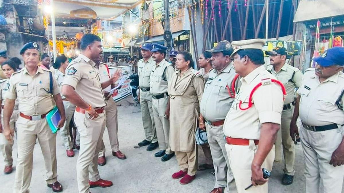SP V. Harshavardhan Raju Briefing Police Personnel after viewing security measures for Poleramma Jatar in Venkatagiri in the Tirupati district on Wednesday. | Photo Credit: By Agreement
