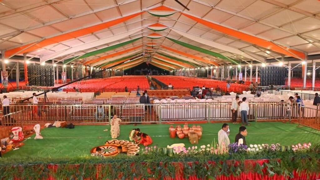Officials said tents covering an area of ​​about 2.76 million square feet have been erected to accommodate more than one million beneficiaries. Around 2,550 buses, including those of NWKRTC, KKRTC, KSRTC, private operators and educational institutions, have been deployed to transport the beneficiaries, with two nodal officers assigned to each bus.