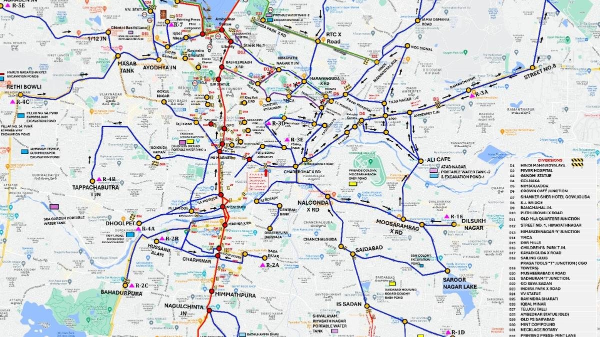 The odds of vehicles will be forced on several points, including Keshavagiri, Chandrayangutta X Road, Moosarambaghagh, Chaderghat, Afzalgunj, MJ Bridge, Liberty Junction, RTC X Roads, Paradise, Ranigunj, Patny and Tank Bund. It is recommended to use the inner circular road, an outer circular road or the Masab – Punjagutta – Begumpet – Secunderebad corridor to prevent overload.
