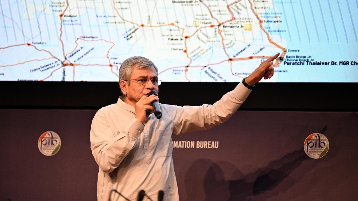 Union Railway Minister Ashwini Vaishnaw addressing the media on the Cabinet’s decision at the National Media Center in New Delhi on April 18, 2026. | Photo credit: Sushil Kumar Verma