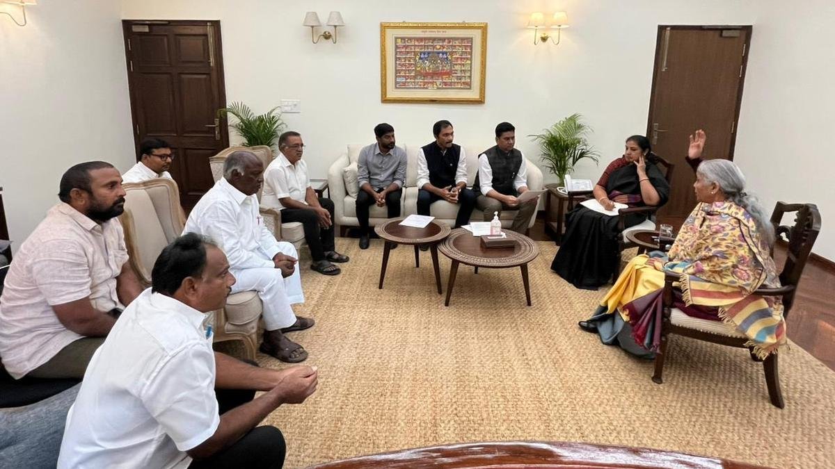 A delegation of Flue-Cued Virginia (FCV) tobacco growers from Andhra Pradesh, Telangana and Karnataka, led by Ms. Purandeswari, met Ms. Sitharaman in New Delhi on Thursday to review the tobacco tax hike, citing its adverse impact on farmers and the regulated FCV tobacco ecosystem.